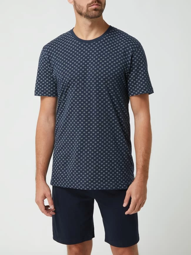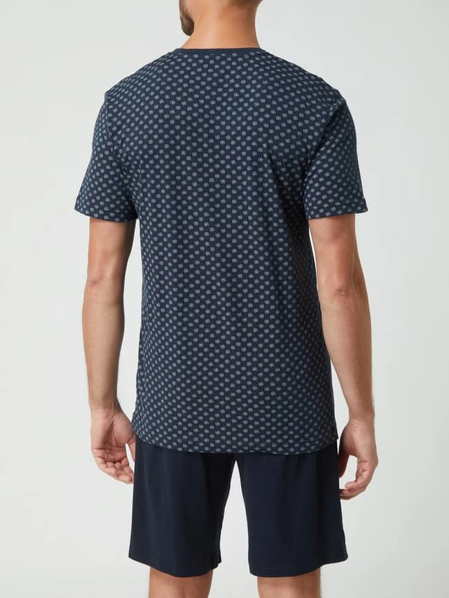 Der Pyjama von Bugatti ist aus Baumwolle gefertigt und gerade geschnitten. Er kommt mit Logo-Muster am Oberteil und Shorts mit elastischem Bund.