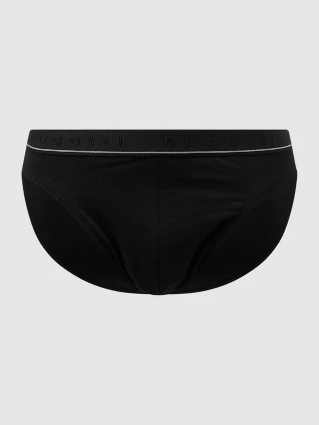 Der Slip von Bugatti ist aus einer Modalmischung mit Baumwoll- und Stretch-Anteil gefertigt. Er zeigt sich ohne Beinansatz und kommt mit elastischem Bund.