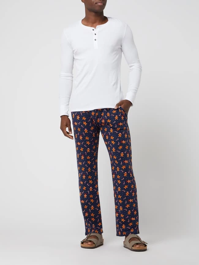 Die Pyjama-Hose von Christian Berg Men ist aus einem Baumwoll-Elasthan-Mix gefertigt und locker geschnitten. Sie kommt mit Allover-Muster, elastischem Bund und Eingrifftaschen.