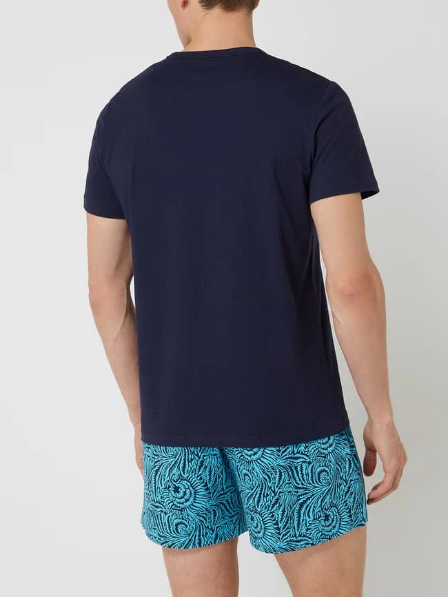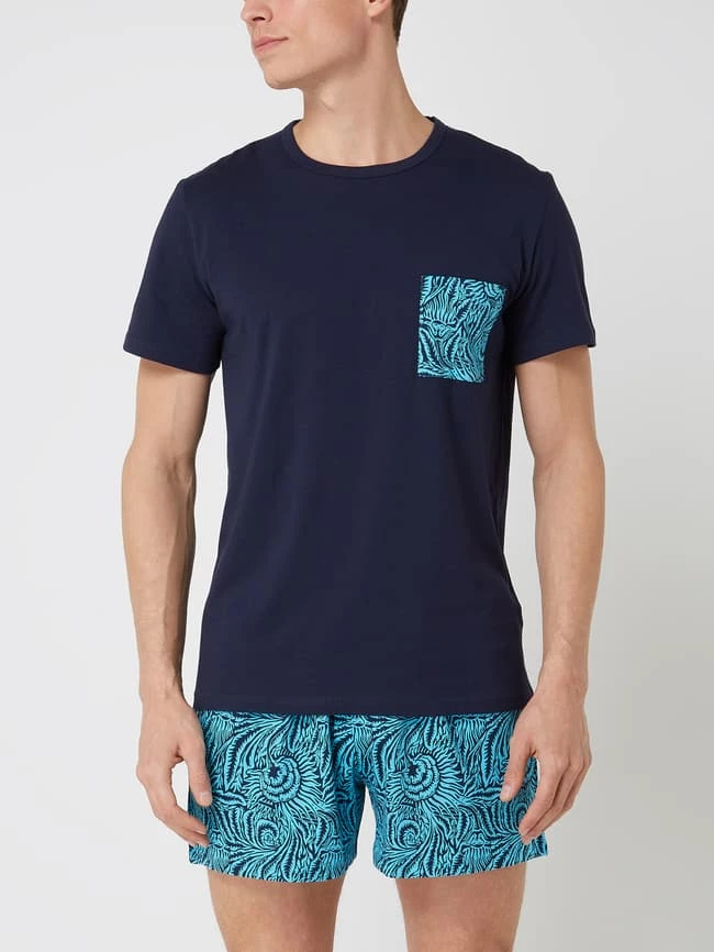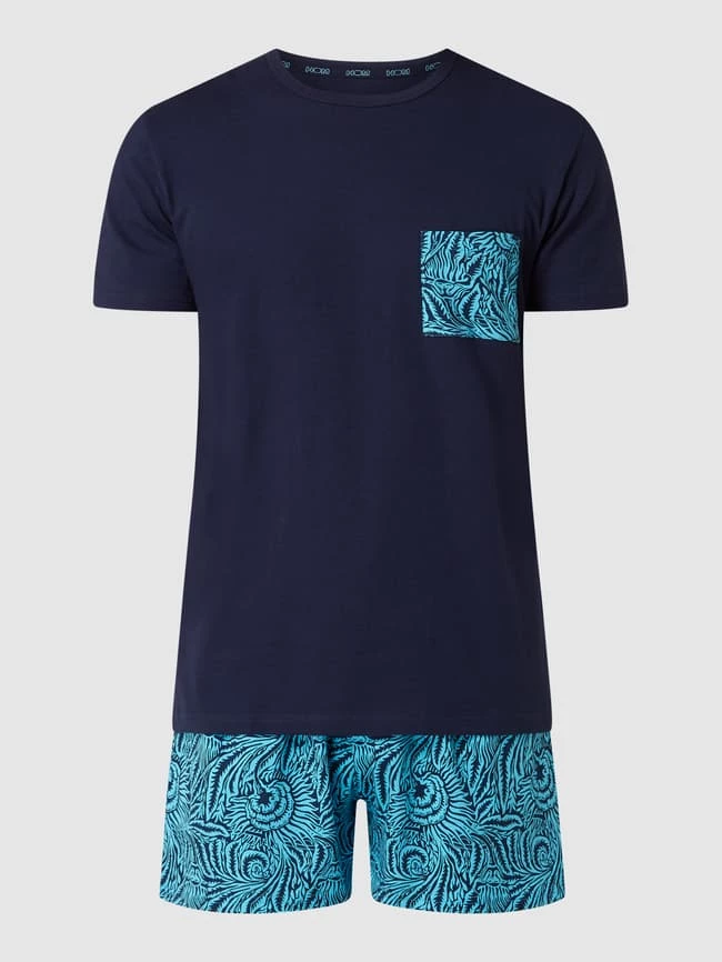 Der Pyjama von HOM ist aus reiner Baumwolle gefertigt. Er zeigt sich in lockerer Passform mit kurzen Ärmeln, elastischem Bund und seitlichen Eingrifftaschen.