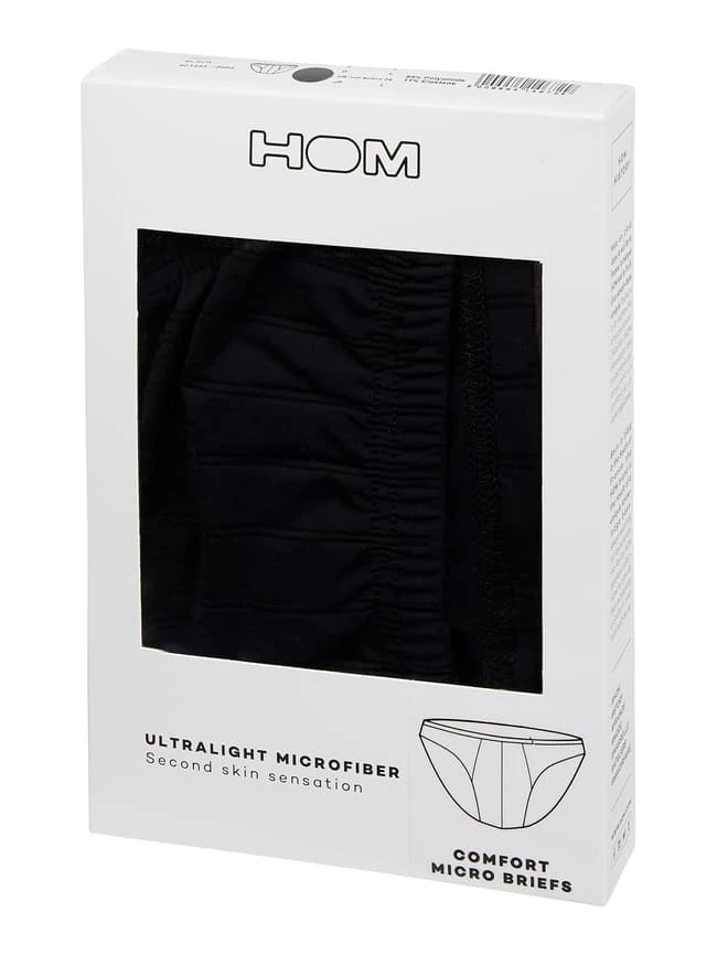Der Slip von HOM ist aus Mikrofaser gefertigt. Er kommt ohne Beinansatz mit elastischem Bund. Artikel aus Mikrofaser sind in der Regel sehr glatt und anschmiegsam. Sie glänzen leicht und behalten auch nach mehrmaliger Wäsche ihre Form. Sie transportieren Flüssigkeit vom Körper weg und trocknen schnell.