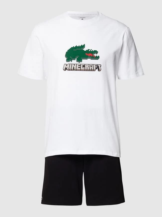 Der Pyjama von LACOSTE Minecraft ist aus einem Baumwoll-Elasthan-Mix gefertigt und gerade geschnitten. Er zeigt sich mit Label-Print, Shorts mit Brand-Stitching und T-Shirt mit Rundhalsausschnitt und Label-Print. Das Modell ist Teil der Kollektion LACOSTE Minecraft.