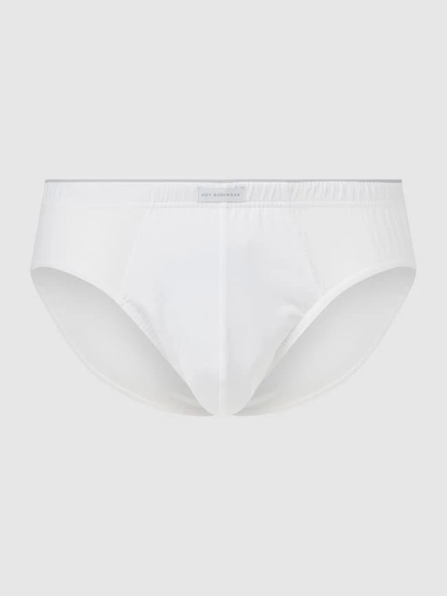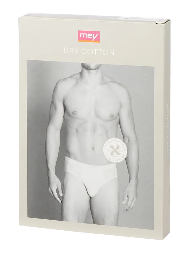 Der Slip von Mey ist aus einer atmungsaktiven und temperaturausgleichenden Baumwollmischung mit Stretch-Anteil gefertigt. Er zeigt sich mit kleinem Logo-Aufnäher und Teilungsnähten.