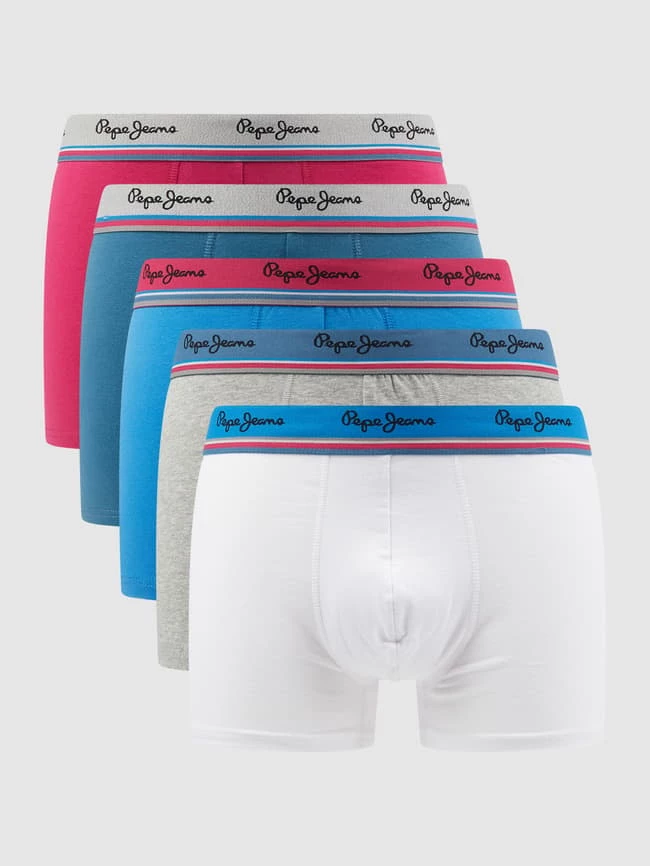 Die Trunks von Pepe Jeans ist aus einem Baumwoll-Elasthan-Mix gefertigt. Sie zeigt sich in schmaler Passform mit elastischem Logo-Bund und kommt im 5er-Pack.
