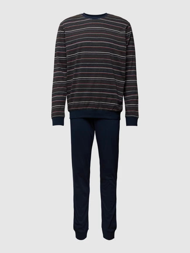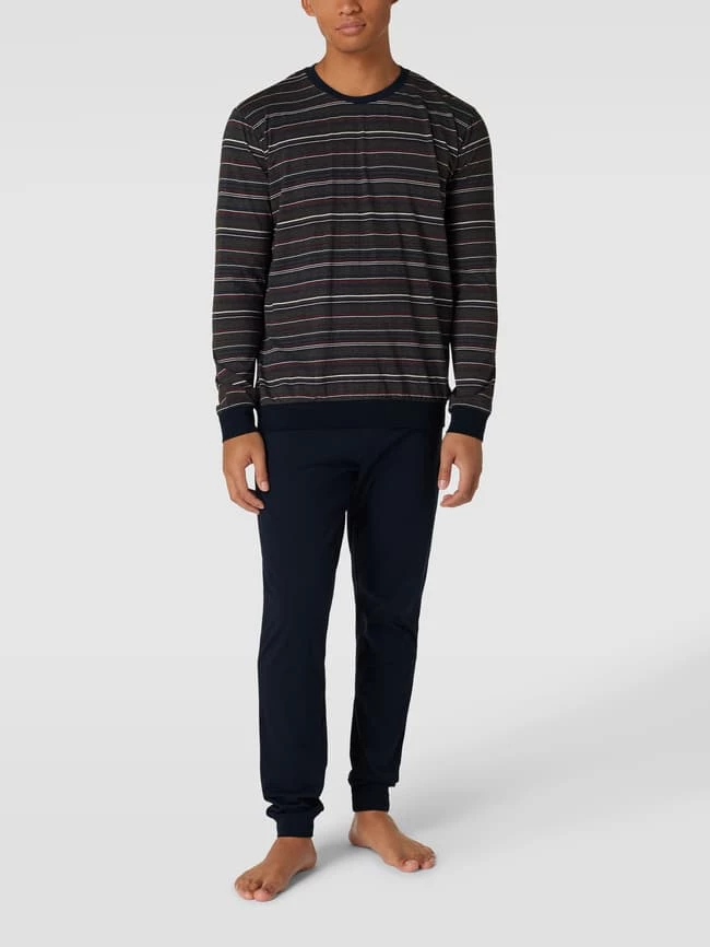 Der Pyjama von SCHIESSER ist aus reiner Baumwolle gefertigt und gerade geschnitten. Das Oberteil zeigt sich mit Streifenmuster. Die Hose kommt mit Gesäßtasche.