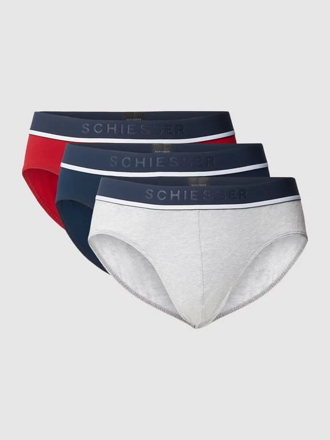 Der Slip von SCHIESSER ist aus einem Baumwoll-Elasthan-Mix gefertigt und körpernah geschnitten. Er kommt im 3er-Pack und zeigt sich mit Label-Details und elastischem Bund.