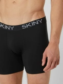 Der Slip von Skiny ist aus Mikrofaser gefertigt und zeigt sich ohne Beinansatz. Er kommt mit elastischem Logo-Bund und Kontraststreifen. Artikel aus Mikrofaser sind in der Regel sehr glatt und anschmiegsam. Sie glänzen leicht und behalten auch nach mehrmaliger Wäsche ihre Form. Sie transportieren Flüssigkeit vom Körper weg und trocknen schnell.