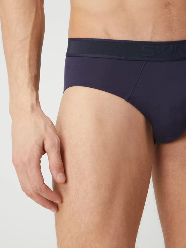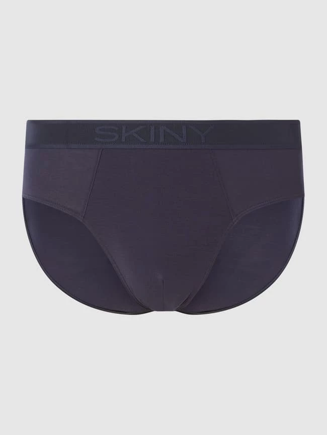 Der Slip von Skiny ist aus einem Viskose-Elasthan-Mix gefertigt. Er zeigt sich ohne Beinansatz mit elastischem Bund und Logo-Stickerei.